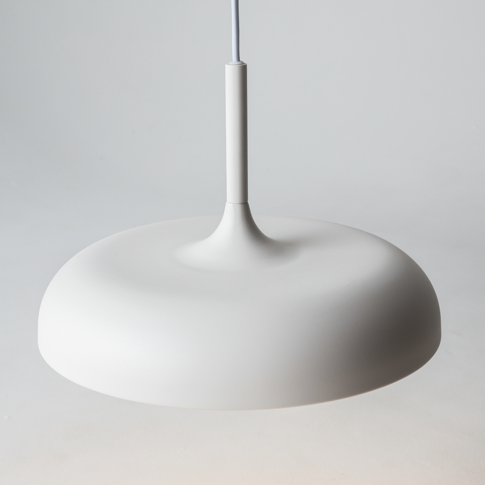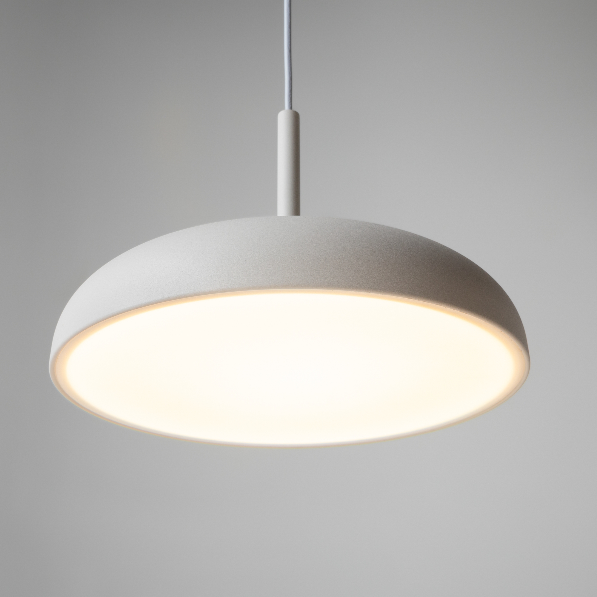 В минималистичной серии Gerhard представлены светильники в двух диаметрах (300 мм и 400 мм), двух цветах (черный и белый), а также в двух форматах.  Первое поколение светильников – классические – направленный вниз свет, длина провода 3 метра. Второе поколение светильников – функциональные – двунаправленный источник света (вверх и вниз) и лифтовый механизм с проводом 2 метра, что позволяет менять высоту расположения светильника одним движением. LED-источник света с цветовой температурой 3000K.
