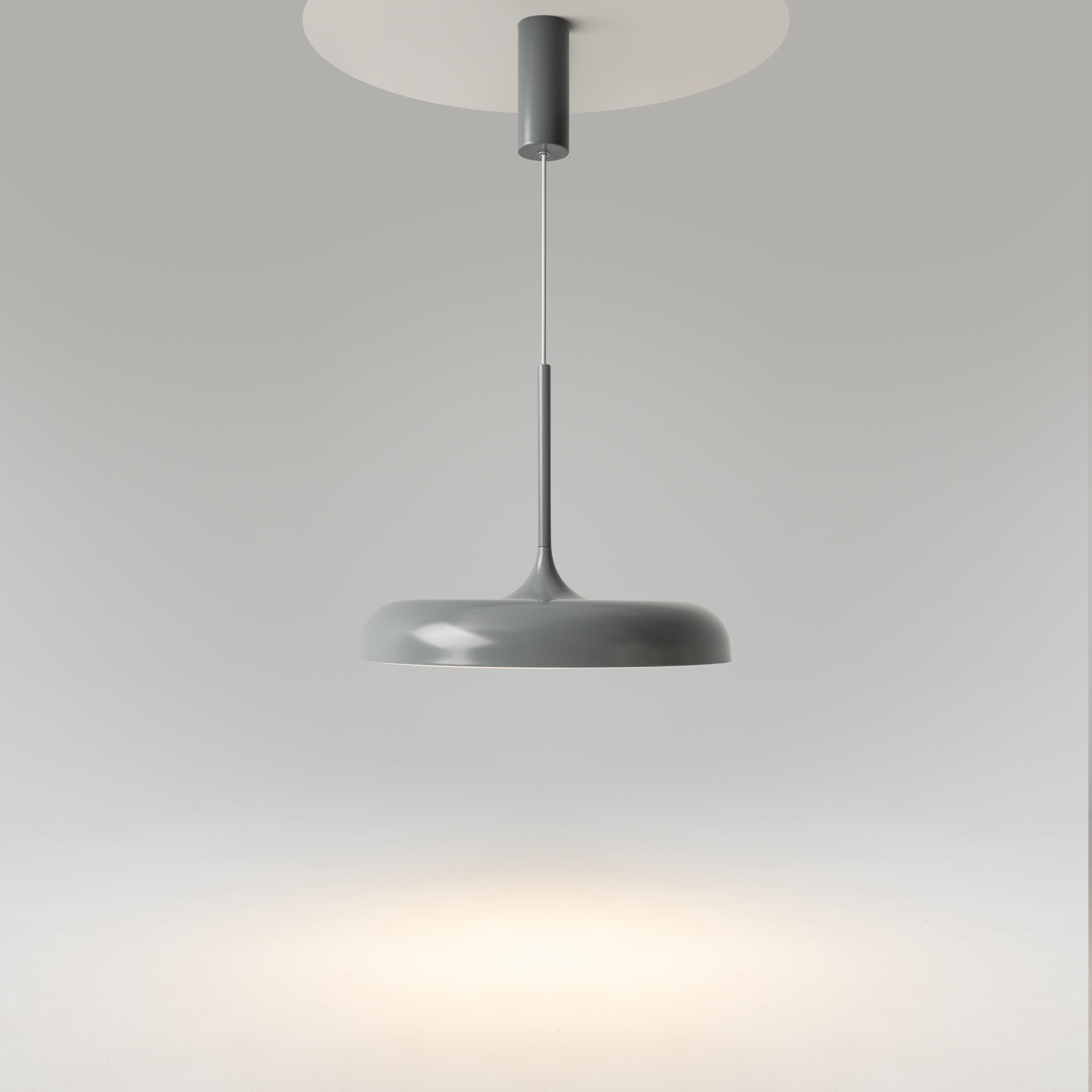 В минималистичной серии Gerhard представлены светильники в двух диаметрах (300 мм и 400 мм), двух цветах (черный и белый), а также в двух форматах.  Первое поколение светильников – классические – направленный вниз свет, длина провода 3 метра. Второе поколение светильников – функциональные – двунаправленный источник света (вверх и вниз) и лифтовый механизм с проводом 2 метра, что позволяет менять высоту расположения светильника одним движением. LED-источник света с цветовой температурой 3000K.