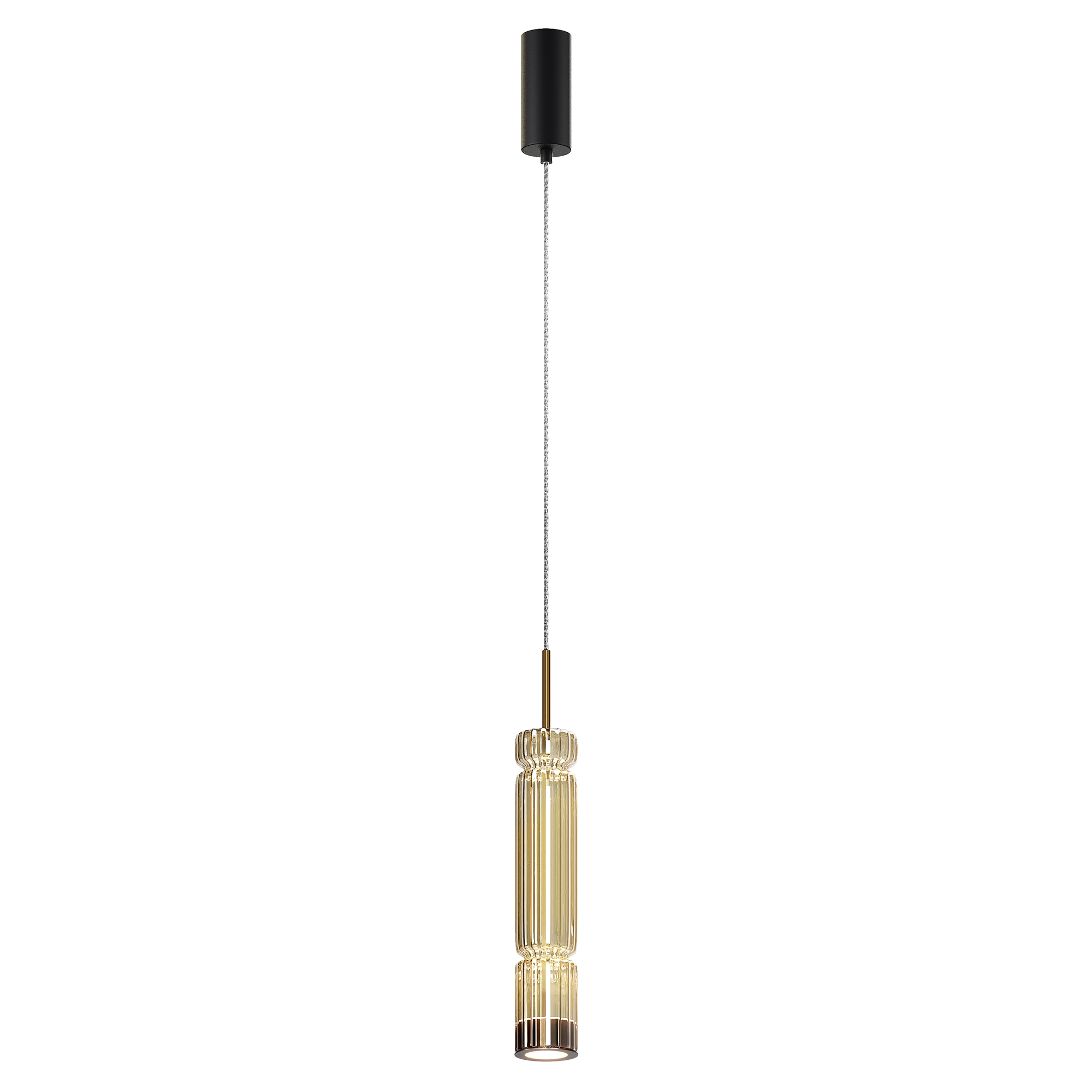 Арматура - металл, цвет - хром, черный. Цилиндрические плафоны из стекла с вертикальным рельефным рисунком в трех оттенках: прозрачный, коньячный, дымчатый. Метафора древнегреческих храмовых колонн в образе светильников. LED-источник света. Цветовая температура 3000К.