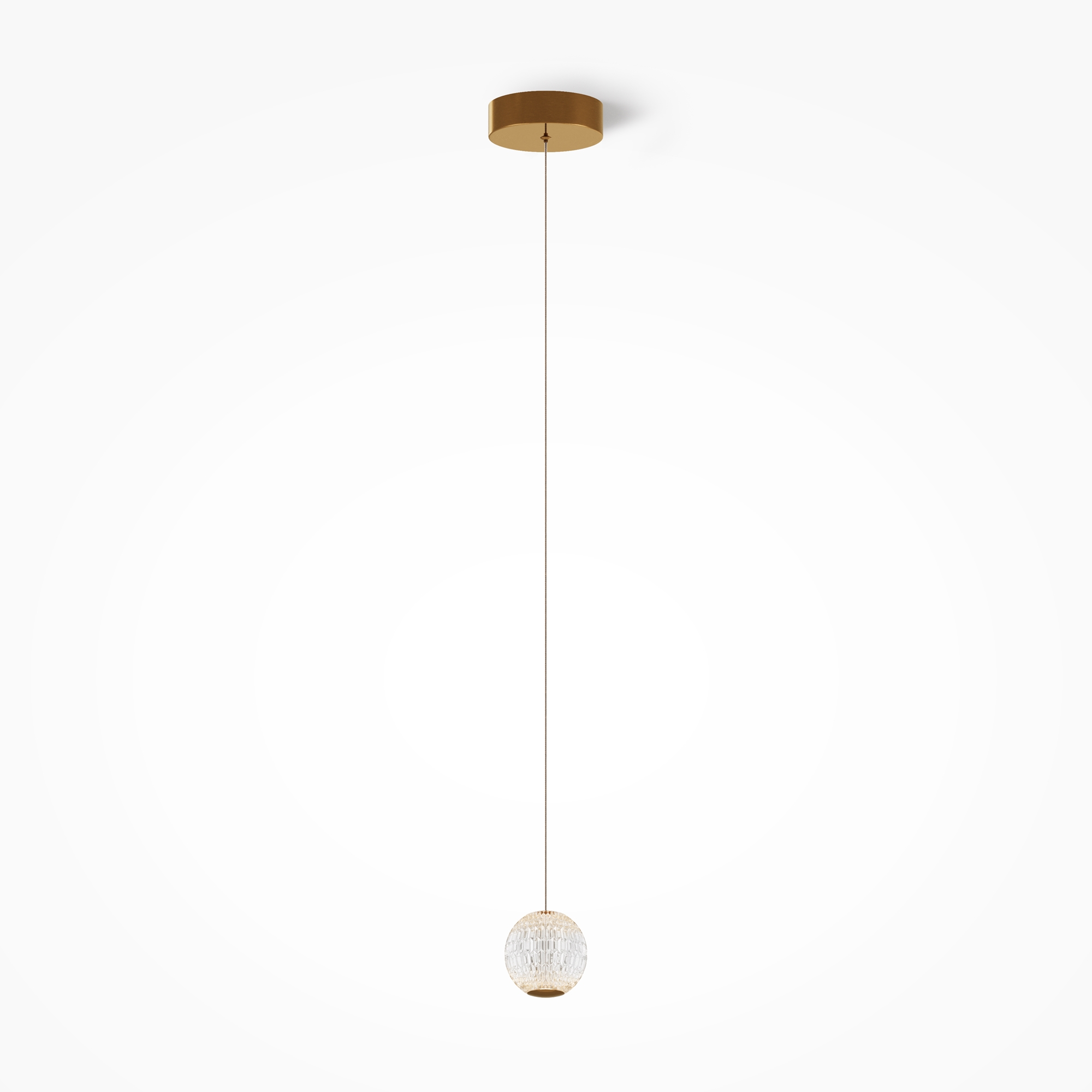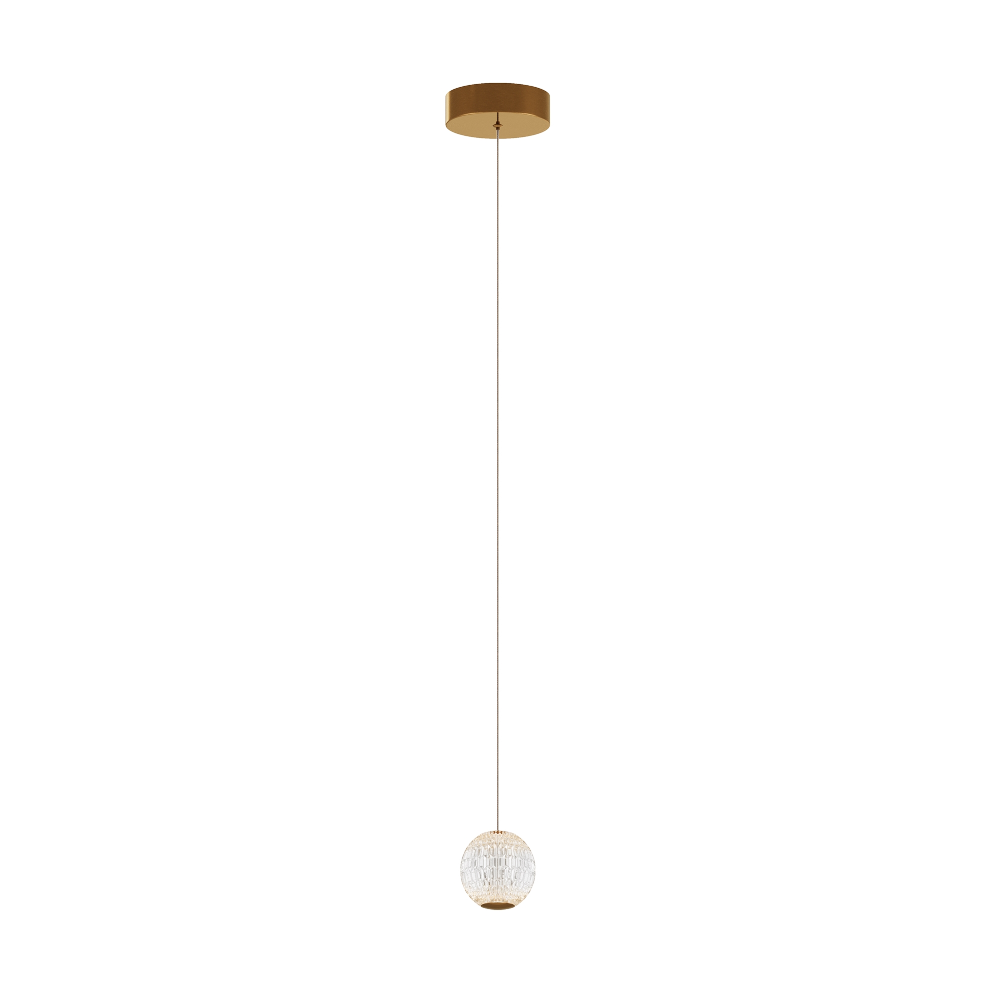 Цвет арматуры — латунь, плафоны из прозрачного акрила. Подвесной светильник с прочными и легкими плафонами из акрилового стекла снаб жен встроенным LED-источником света. LED-модуль дает теплый свет с цветовой температурой 3000К. Длина провода — 3 метра, ее можно  регулировать для установки в помещении с высокими потолками.