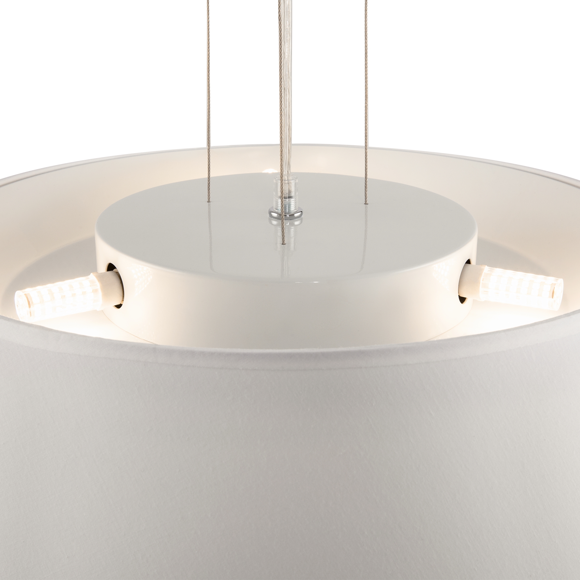 Материал арматуры - металл. Абажур из текстиля и льна, нанесенного на ПВХ. Цвета — белый, темно-серый, серый, белый с черным кантом. Источник света в подвесных моделях скрыт под матовым рассеивателем. Длина провода 3 метра. Торшеры и настольные лампы с регулируемым кронштейном. Лампа с цоколем Е27.