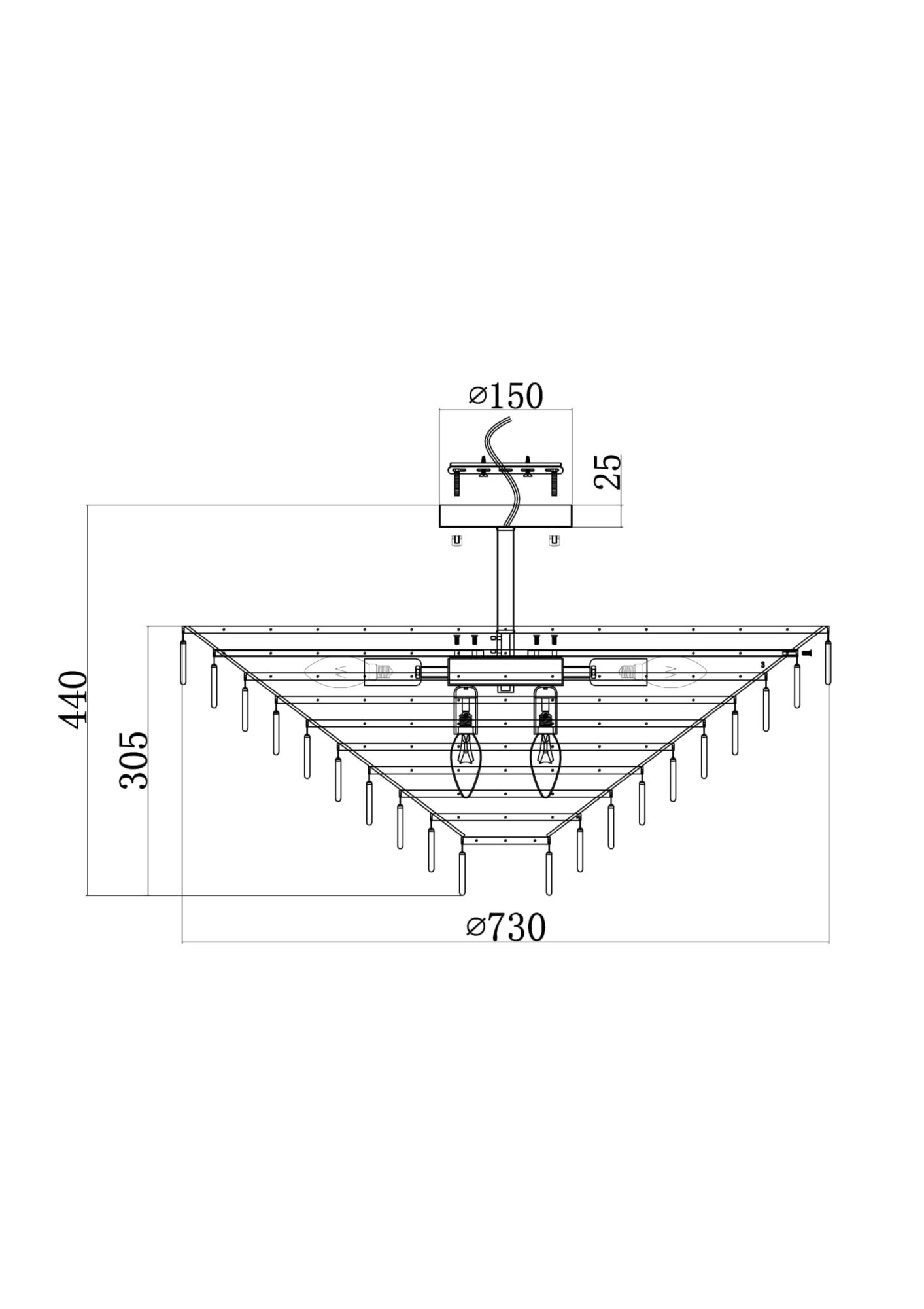 Материал арматуры – металл, цвет – золото. Фактурный декор из прозрачного стекла. Округлые подвески с рельефным узором скрывают источники света – лампы с цоколем Е14.