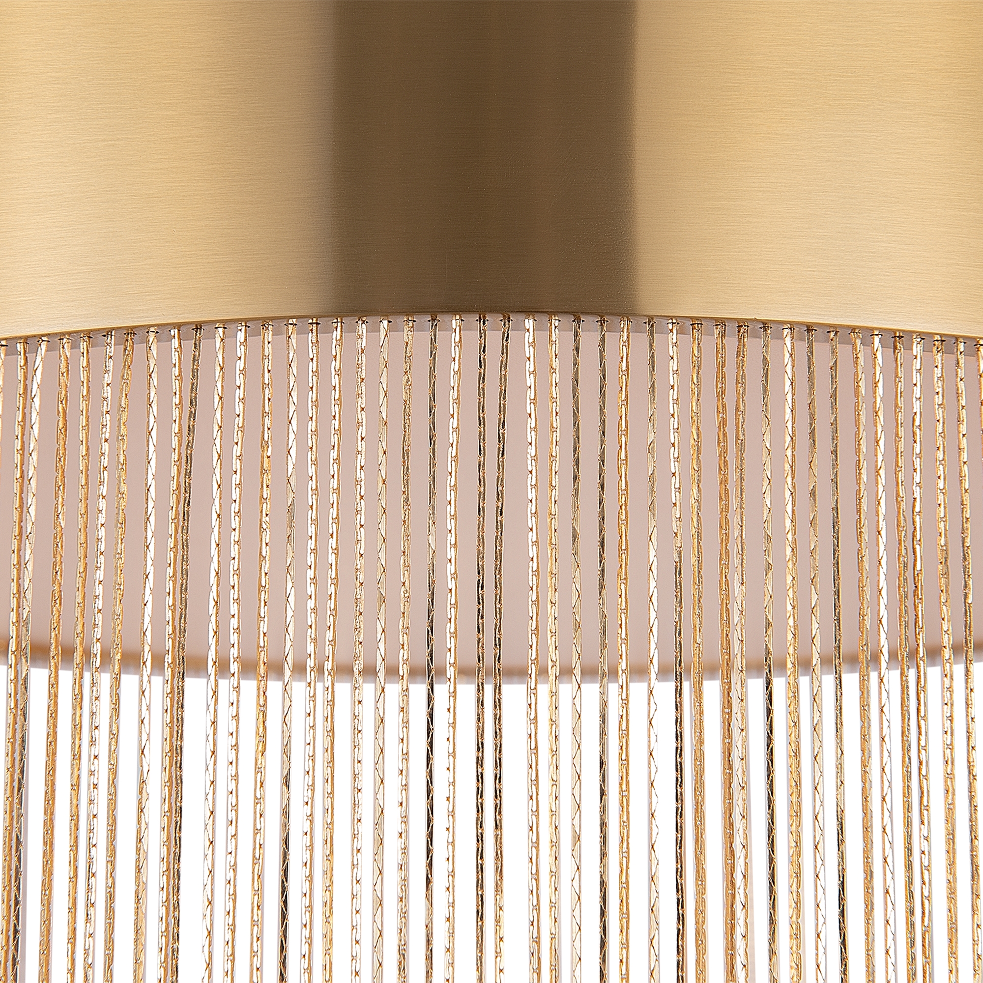 Металлическая арматура, цвет - золото. Мотивы ювелирного искусства в дизайне. Изящные цепочки на корпусе светильника создают переливы бликов. LED источник света. Цветовая температура - 3000К. Регулируемая высота подвесного светильника.