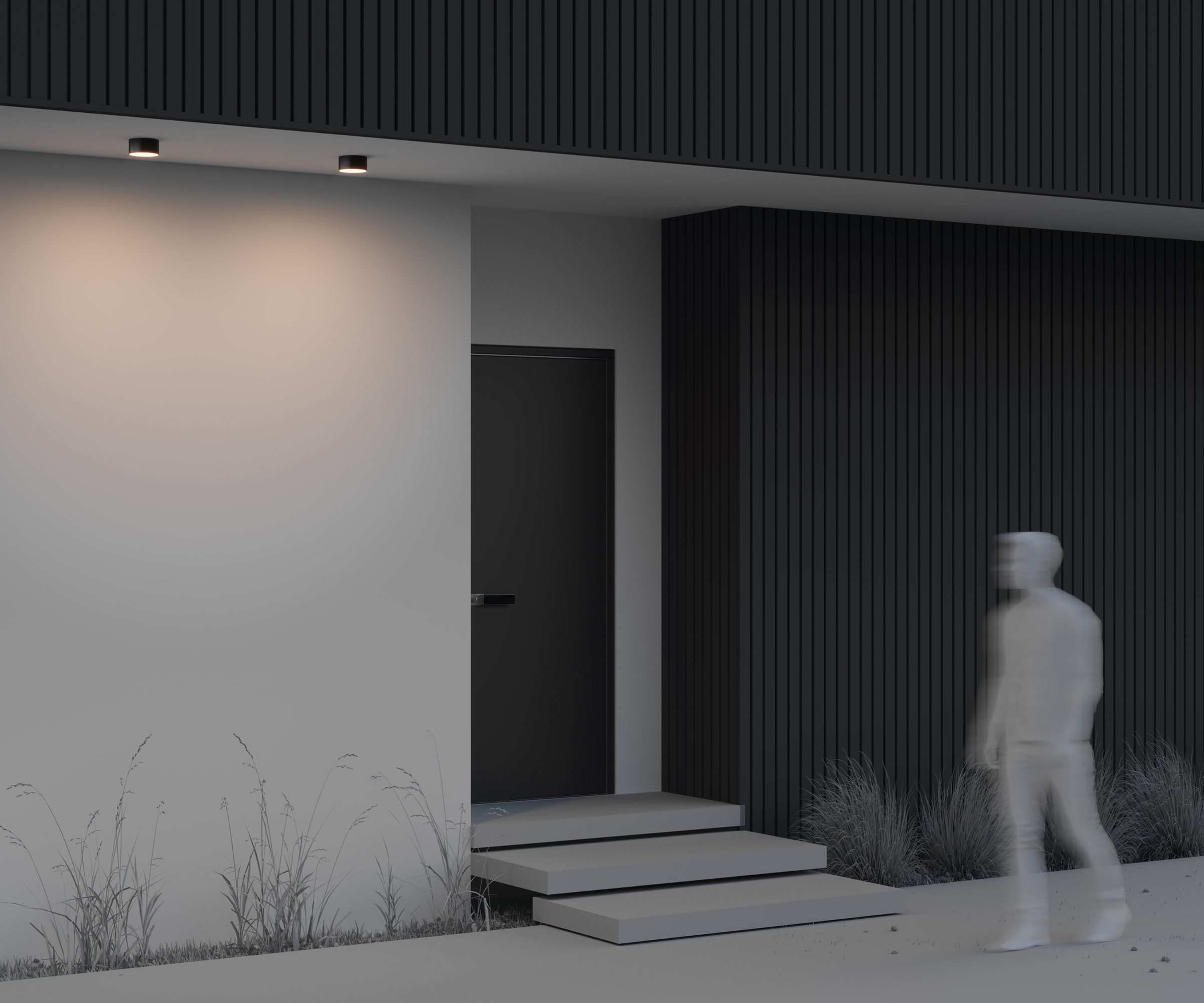 Алюминиевый корпус. Цвета - черный, белый. Белый матовый рассеиватель из высокопрочного пластика. Два размера корпуса, два вида мощности. Цветовая температура — 3000К и 4000К. Высокая степень защиты от пыли и влаги — IP 65.