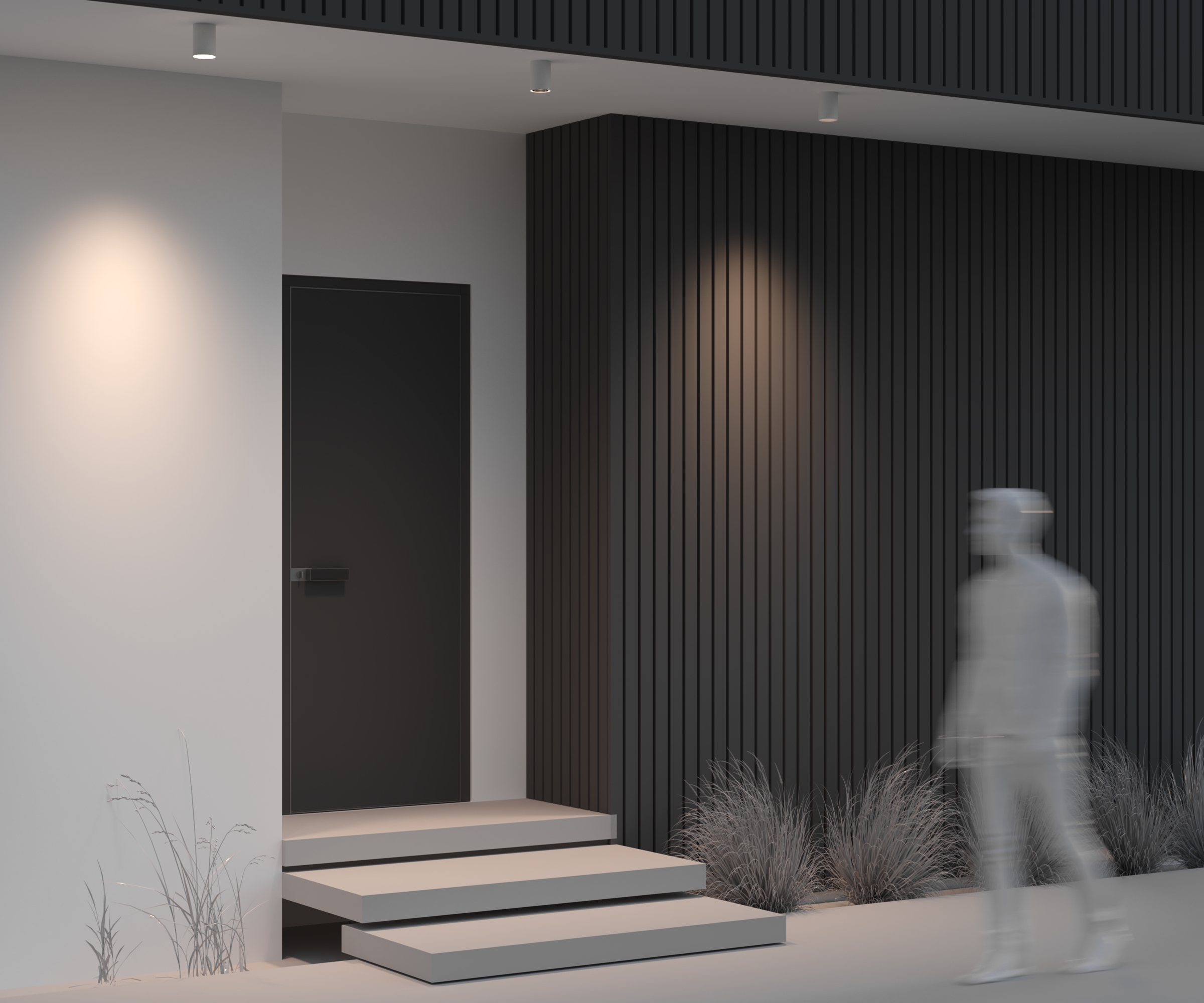 Материал арматуры - алюминий, цвет - черный и белый. Потолочный светильник, LED-источник света, цветовая температура 3000К, два размера, два цвета и две мощности (5Вт и 10Вт), высокая степень защиты от пыли и влаги IP65, высокий индекс цветопередачи >90.