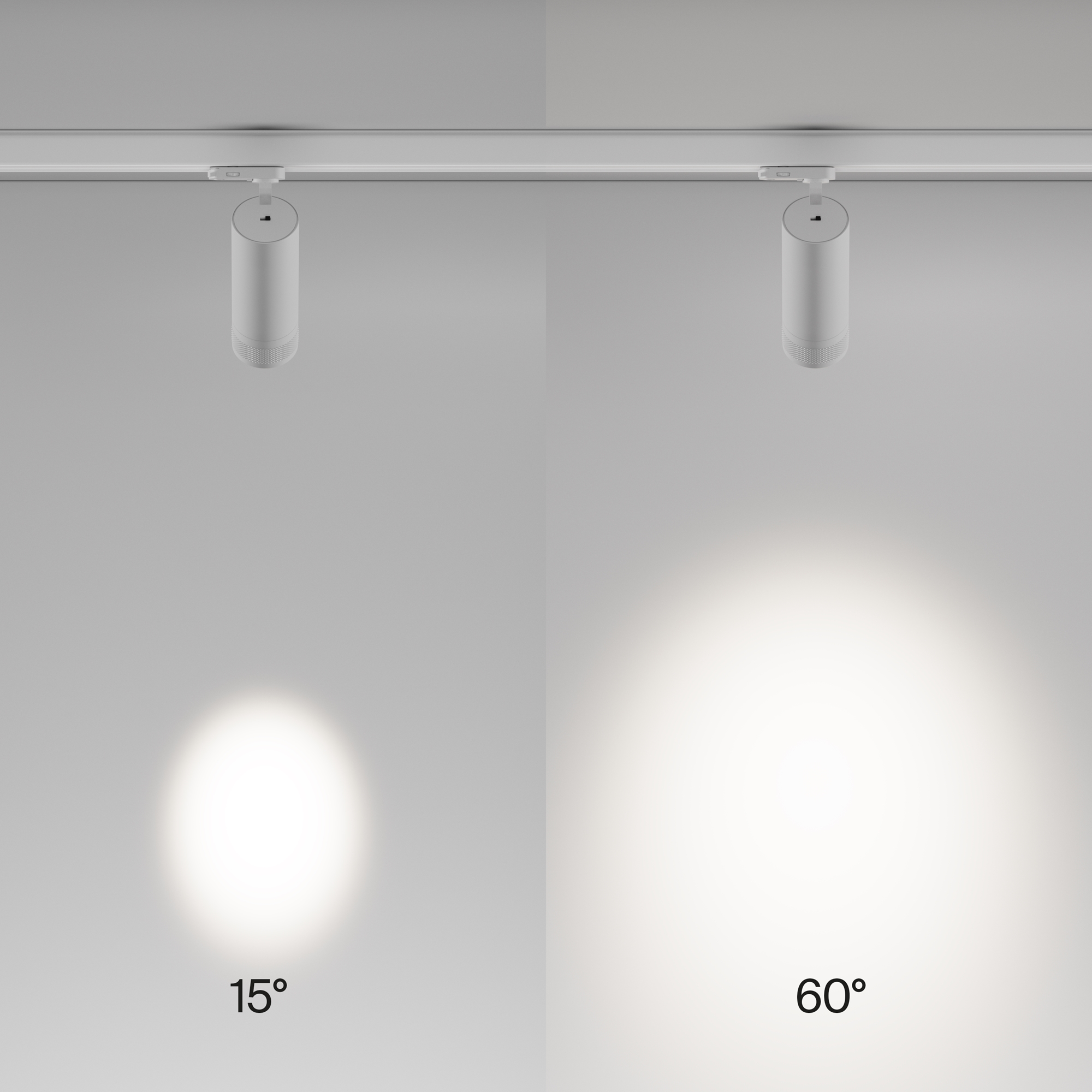 Светильник с регулируемым углом рассеивания света предлагает возможность настройки угла освещения для создания различных эффектов освещения. Металлический корпус доступен в двух базовых цветах — черном и белом. Регулировка угла рассеивания света выполняется в диапазоне от 15° до 60° с помощью специального кольца на корпусе, что позволяет удобно выставлять акценты в интерьере или создавать широкий угол освещения. Поворотный механизм позволяет регулировать направление корпуса  355° в горизонтальной плоскости, 90° - в вертикальной.Светильники оснащены встроенным LED-источником света с высоким индексом цветопередачи CRI>90 и предлагают два варианта цветовой температуры: 2700K и 4000K.