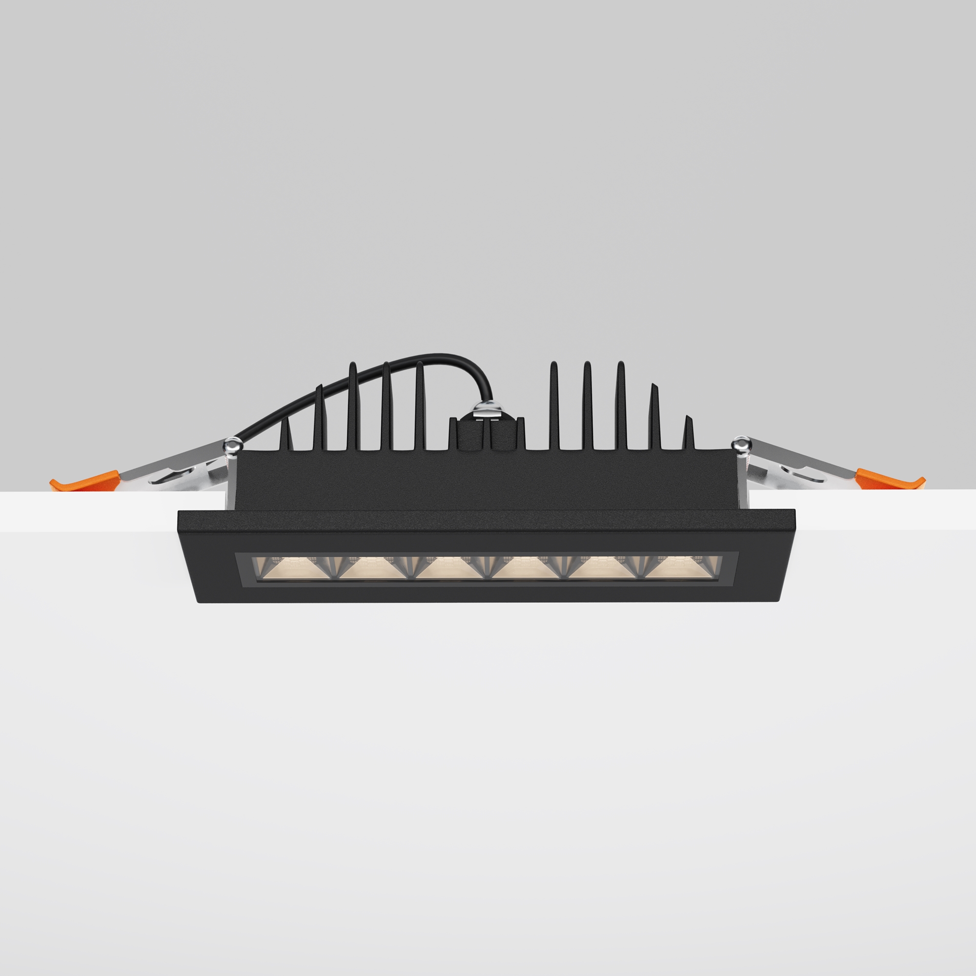 Встраиваемые светильники. Материал арматуры — алюминий, цвет — графит. Компактный дизайн с минималистичной формой. LED-источник света, цветовая температура 3000К. Доступны модели мощностью 12 Вт и 6 Вт. Степень защиты — IP65. Идеальны для интеграции в архитектурные элементы, создания акцентного освещения и подсветки пешеходных зон.