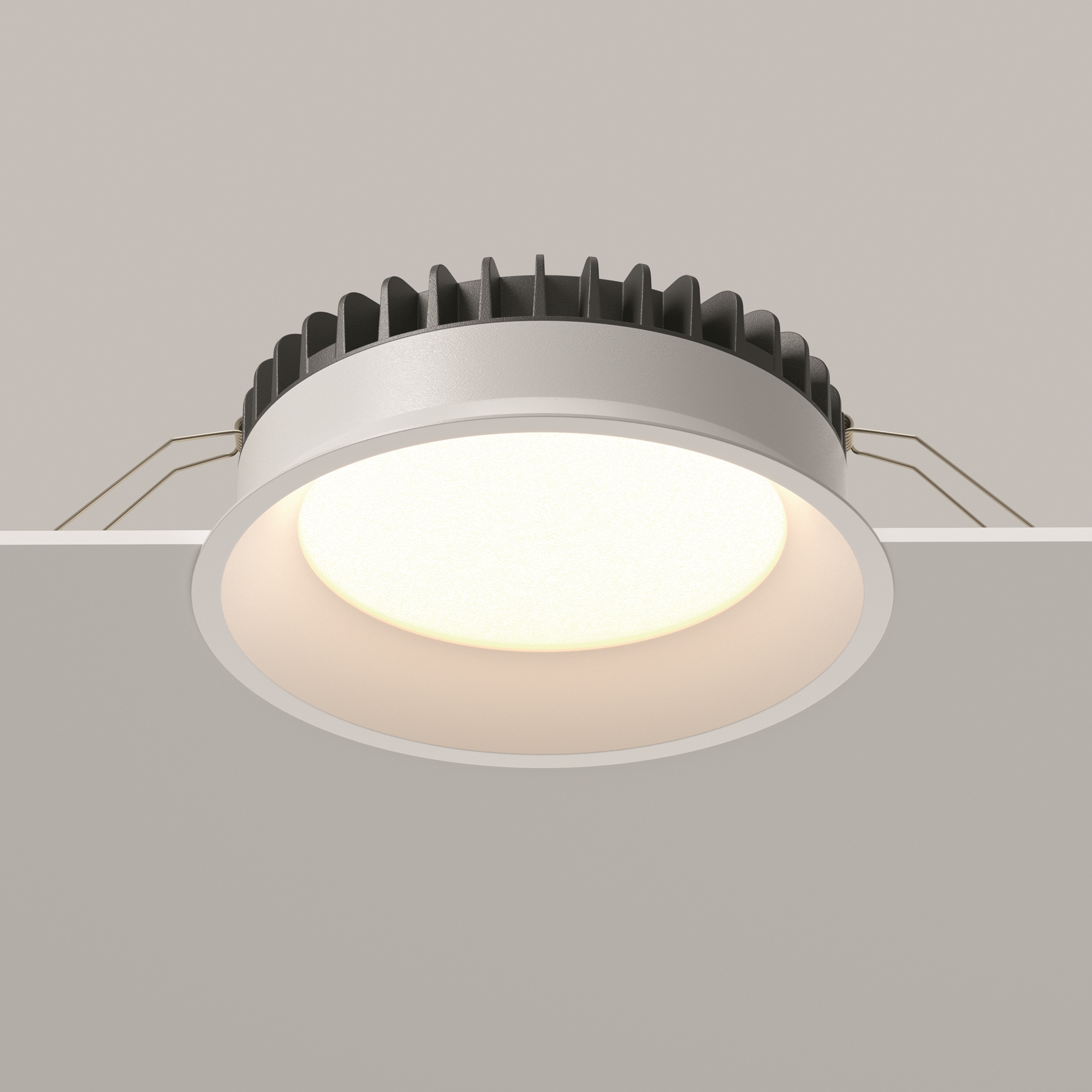 Материал арматуры - алюминий и пластик. Организация основного освещения в интерьере. Высокий коэффициент цветопередачи >90. Качественное отображение цветов. Утопленный матовый рассеиватель. Переключатель цветовой температуры. Повышенная степень пылевлагозащиты IP 44.